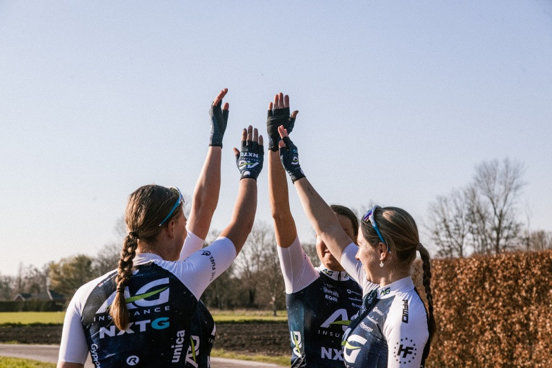 « Quand nous sommes devenus une équipe féminine au niveau élite en 2019 après l’année U19, nous avons poursuivi sur notre lancée. Pour construire une maison, on ne commence pas par le toit, mais par les fondations », commente la fondatrice de NXTG, Natascha den Ouden. « Notre but est de fournir un environnement professionnel aux jeunes cyclistes féminines, pour leur donner les moyens de réaliser leur rêve de passer professionnelles. Ce rêve a commencé en 2019, avec notre toute première course élite au circuit Het Nieuwsblad. Il se poursuit jour après jour et à partir de demain, il se poursuivra avec AG Insurance et Quick-Step Alpha Vinyl à nos côtés. »