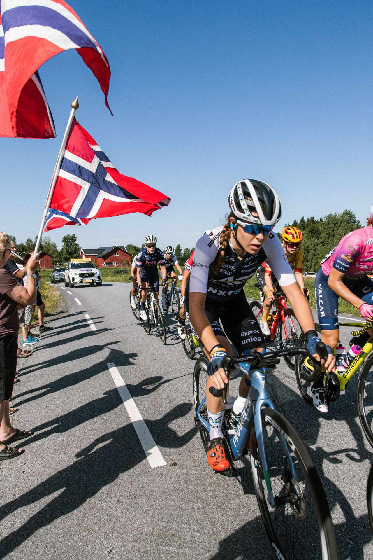 After the Tour de France Femmes, AG Insurance-NXTG lined up for their next Women’s World Tour stage race; the Tour of Scandinavia through Denmark, Sweden and Norway. The team with Britt Knaven, Eline van Rooijen, Maureen Arens, Maud Rijnbeek, Julia Borgström and Amber Aernouts rode aggressively.