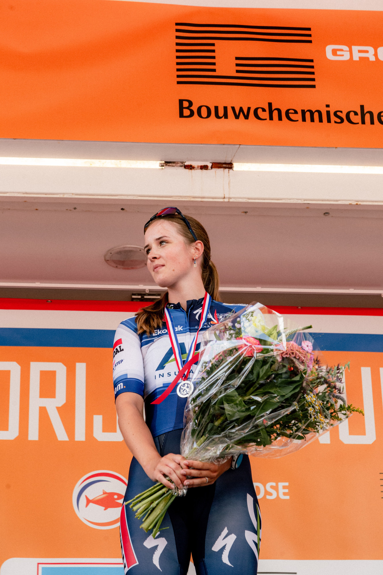 What makes it even more remarkable is that, leading up to the European Championship, I wasn't feeling mentally strong during the Simac Ladies Tour. I was going through a challenging period, but the European Championships turned everything into something truly beautiful. Additionally, the Dutch National Championships in time trial and road racing were also highlights, as I finished in the top 10 among world-class competitors at the Dutch National Championship on the road.