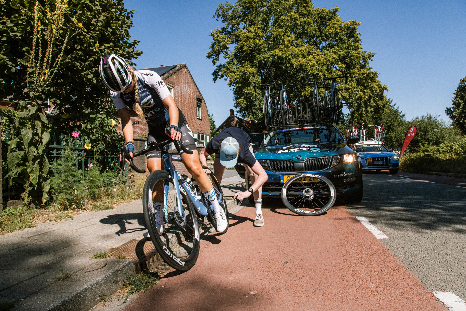 Eline van Rooijen played an important part for the team this week. She was active in breakaways and helped Maud and Ilse who were the designated leaders for the white jersey.